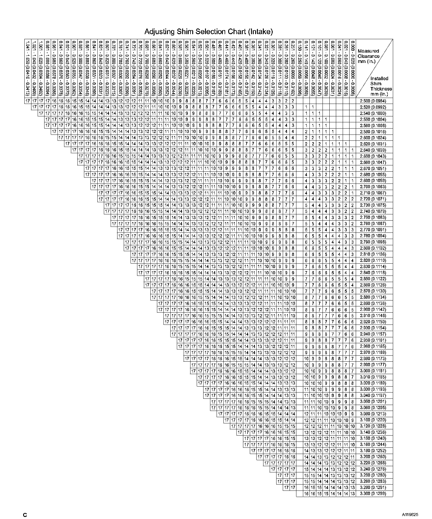 VALVE CLEARANCEAdjusting Shim Selection Chart (Intake):