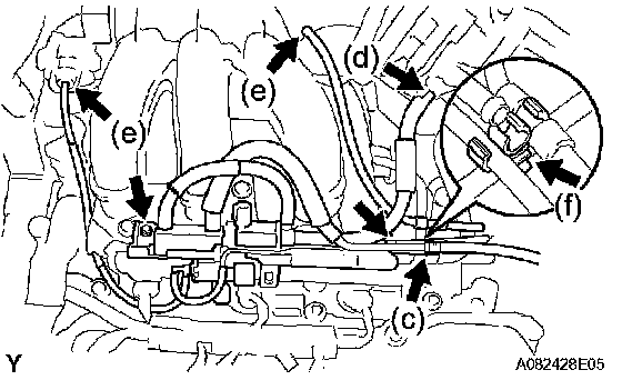 f. Remove the 3 nuts and separate the pressure feed tube.