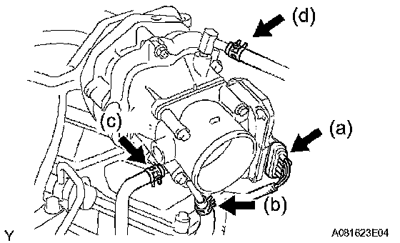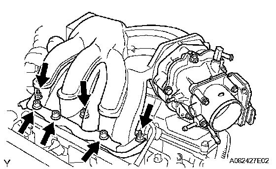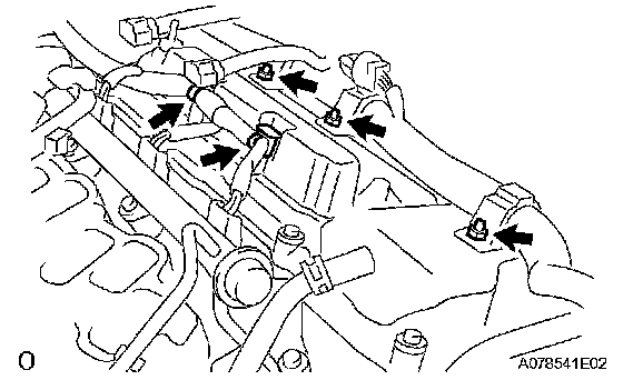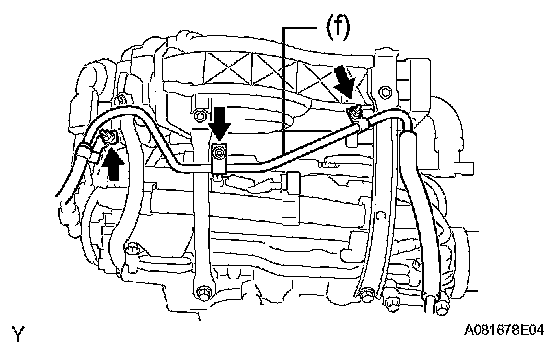 k. Remove the 2 nuts, then remove the emission control valve bracket and the intake air surge tank.