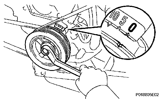 a. Turn the crankshaft pulley, and align the timing notch with the timing mark 0 of the No. 1 timing belt cover.