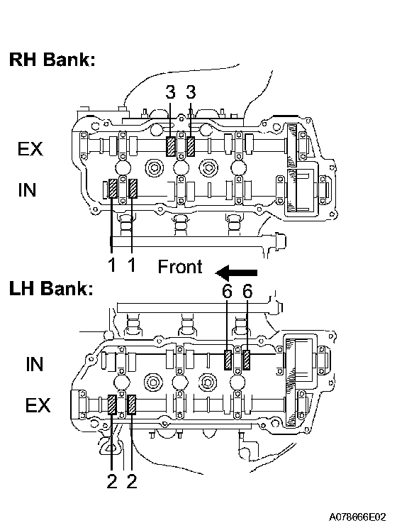 2 Record out-of-specification valve clearance measurements. They will be used later to determine the required replacement adjusting shim.