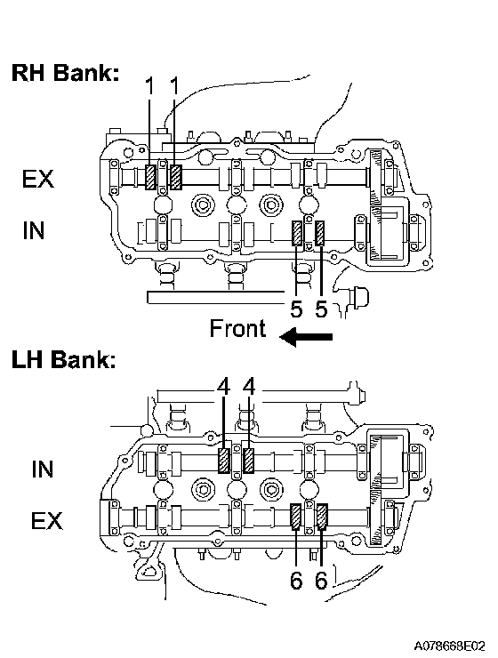 b. Check that the valve lifters on the No. 1 (IN and EX) are both loose.
