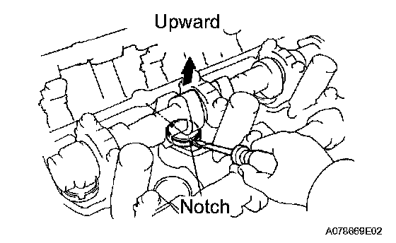 b. Turn the valve lifter with a screwdriver so that the notches are perpendicular to the camshaft.