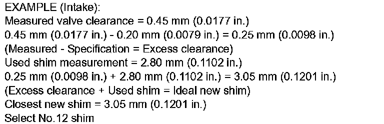 f. Calculate the thickness of a new shim so the valve clearance comes within the specified value.