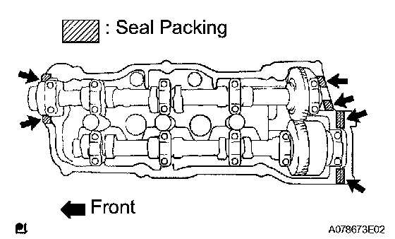 a. Apply seal packing to the cylinder head as shown in the illustration.