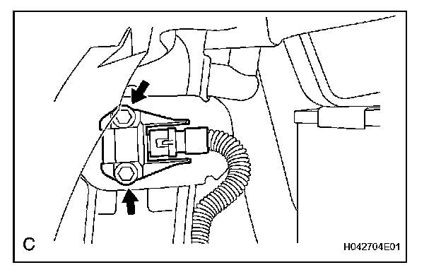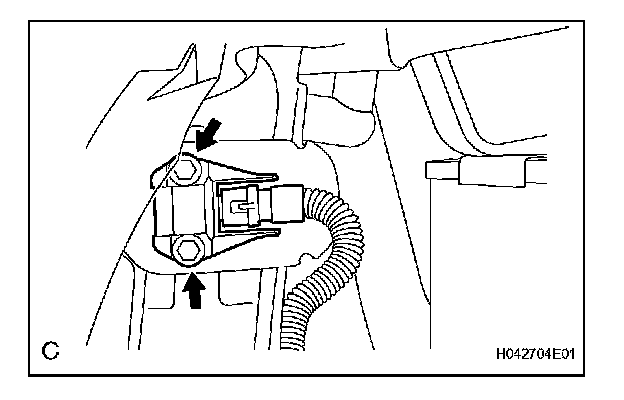 - When installing the front airbag sensor LH, be careful that the SRS wiring does not interfere with other parts and that it is not pinched between other parts.