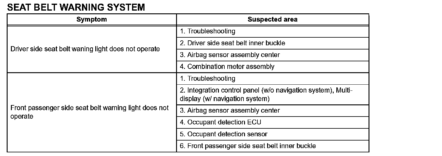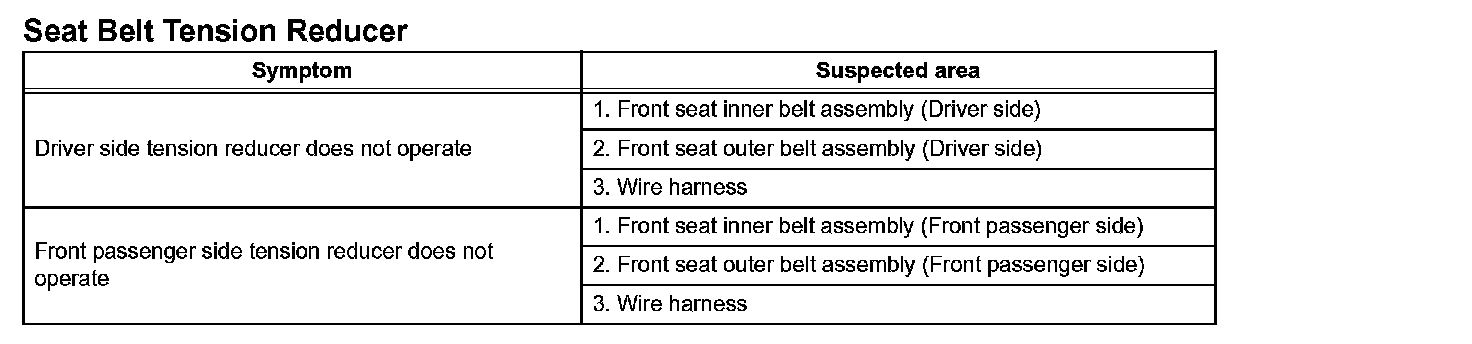 Problem Symptoms Table - Seat Belt Tension Reducer:
