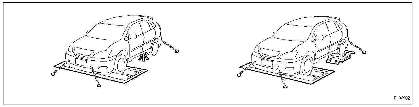 NOTE: If you do not observe the following conditions for the test, there will be the cases where the 4WD functions will deteriorate; the parts in the drive-train system will have a malfunction; the vehicle will jump out. Therefore, do not conduct a test unless observing the following conditions.