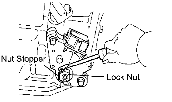 b. Using a screwdriver, unstake the nut stopper, and remove the lock nut and nut stopper.