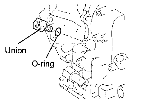4. REMOVE OIL COOLER TUBE UNION (OUTLET OIL COOLER UNION)