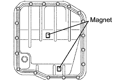 a. Remove the magnets and use them to collect any steel chips. Examine the chips and particles in the pan and on the magnet to determine what type of wear has occurred in the transaxle: