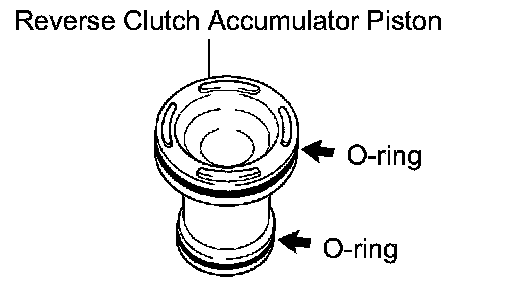 b. Remove the 2 O-rings from the reverse clutch accumulator piston.