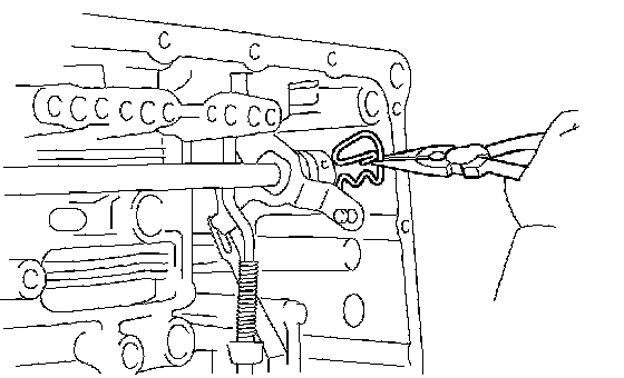 a. Using needle-nose pliers, remove the manual valve lever shaft retainer spring.