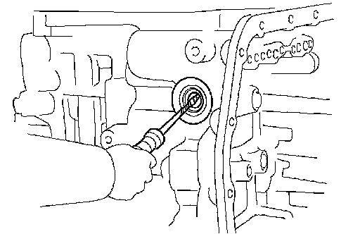 NOTICE: Do not apply excessive force when removing the oil seal.