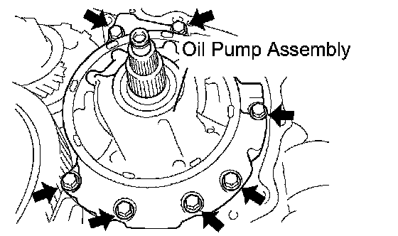 a. Remove the 7 bolts and oil pump from the transaxle case.