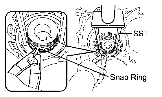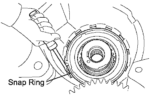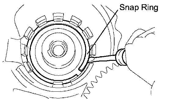 NOTICE: Do not apply excessive force when removing the snap ring.