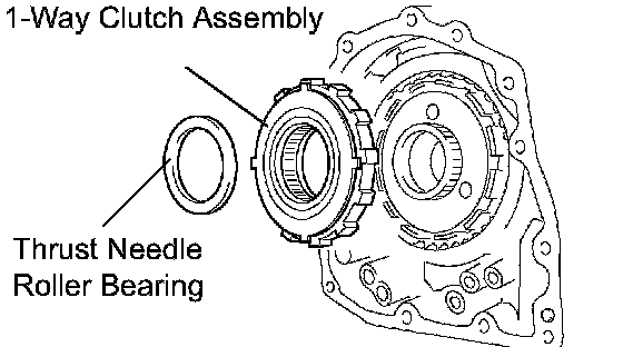 a. Remove the 1-way clutch assembly and the thrust needle roller bearing from the transaxle case.