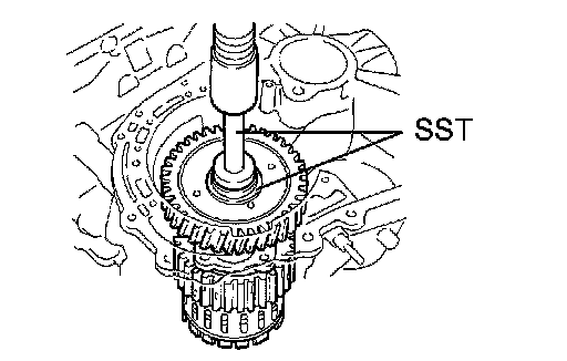 a. Using SST, remove the underdrive cylindrical roller bearing from the transaxle case.
