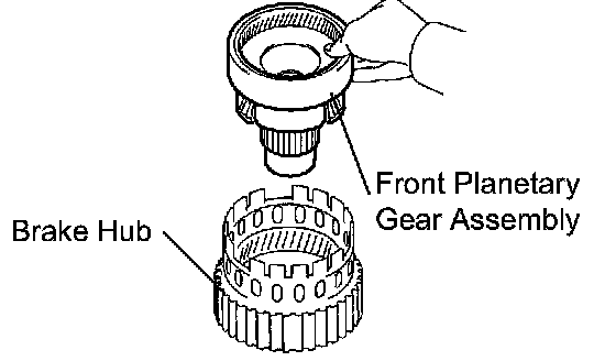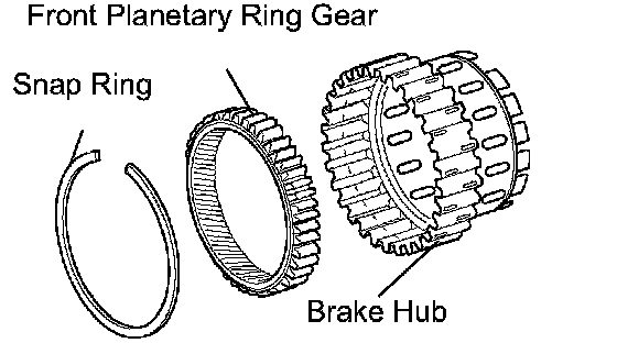 a. Using a screwdriver, remove the snap ring and front planetary ring gear from the brake hub.