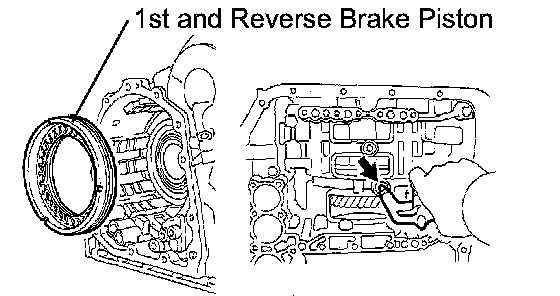 b. Remove the 2 O-rings from the 1st and reverse brake piston.