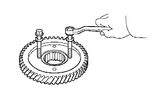 b. As shown in the illustration, tighten the 2 bolts evenly and make clearance of approximately 20.0 mm (0.787 inch) between the counter drive gear and the inner race.