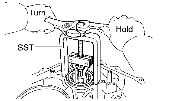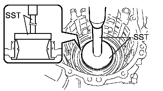 a. Using SST, remove the needleroller bearing from the transaxle case.
