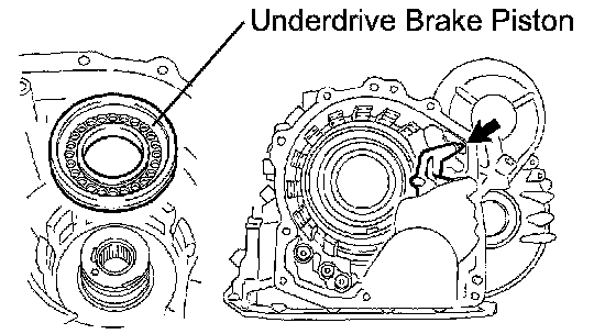 b. Remove the 2 O-rings from the underdrive brake piston.