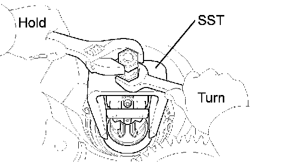 NOTICE: Push down all claws of the washer. Otherwise the SST cannot be fully pressed against the nut, and cannot loosen the nut.