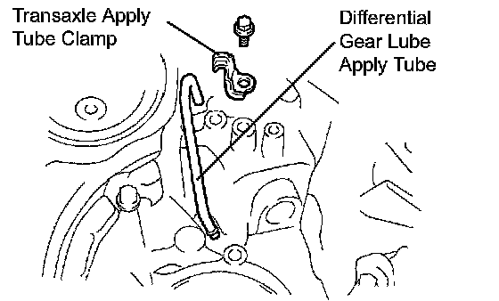 a. Remove the bolt, transaxle apply tube clamp and differential gear lube apply tube from the transaxle housing.
