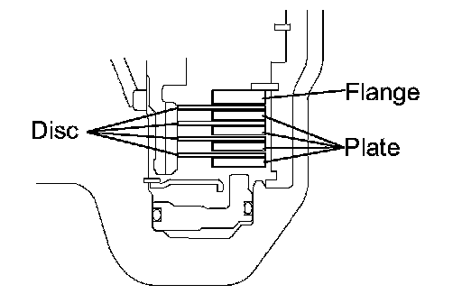 b. Install the 4 discs, 4 plates and flange to the transaxle case.