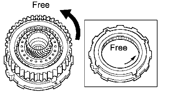 b. Rotate the underdrive clutch assembly to check the rotating direction for the lock or free operation.