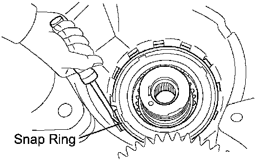 NOTICE: The snap ring should be fixed fully engaged in the groove of the transaxle case.