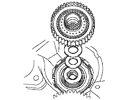NOTICE: Fully engage all the discs of underdrive clutch and hub splines of the underdrive planetary gear assembly and install them securely.