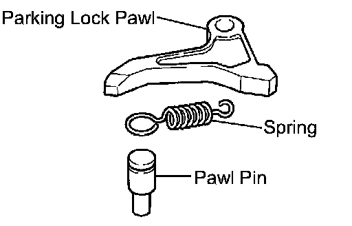 b. Temporarily install the parking lock pawl, shaft and spring to the transaxle case, as shown in the illustration.