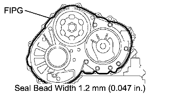 NOTICE: Make sure that the FIPG is applied in a bead (section diameter: 1.2) so that the entire sealing surface will be evenly sealed. The FIPG should also protrude slightly from the flange after the assembly of the parts has been completed.
