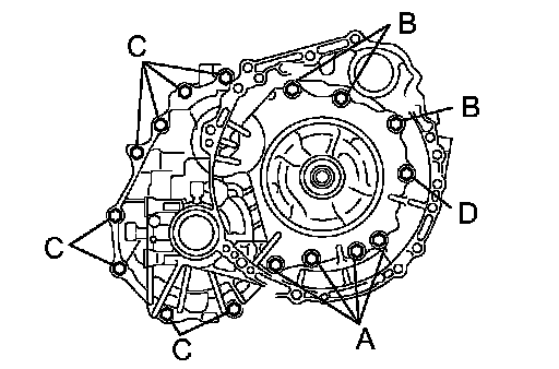 HINT: Apply seal packing or equivalent to bolts A and D.