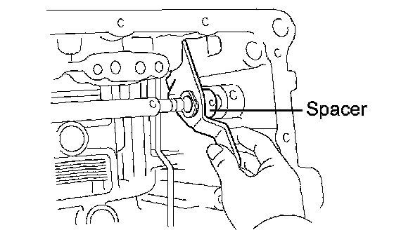 a. Install a new spacer and manual valve lever shaft to the transaxle case.