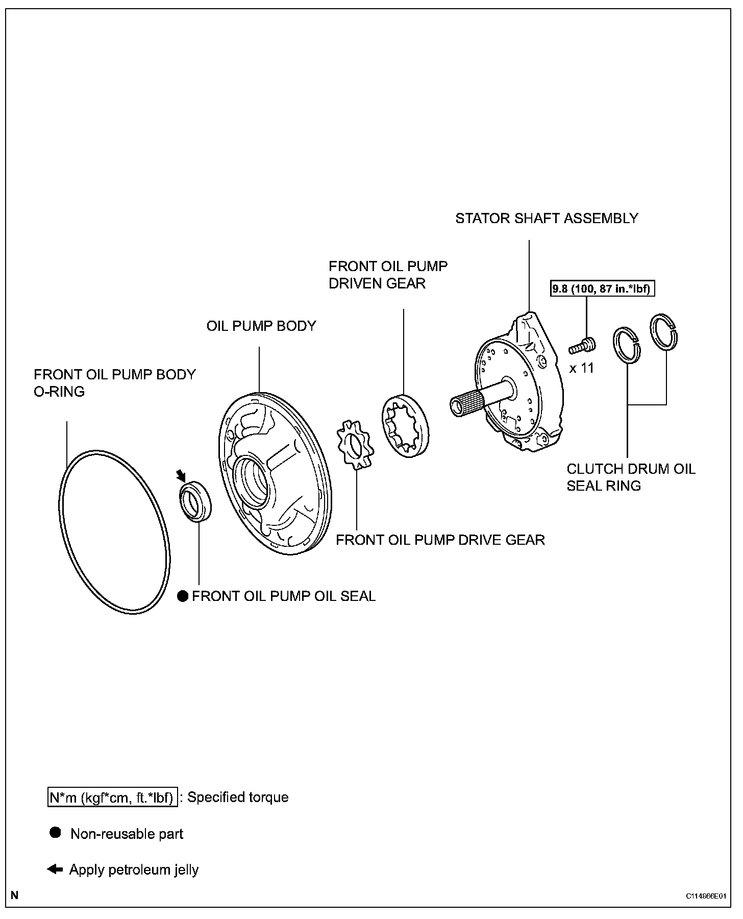 Torque: 9.8 Nm (100 kgf-cm, 87 inch lbs.)