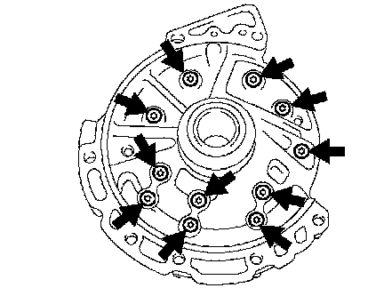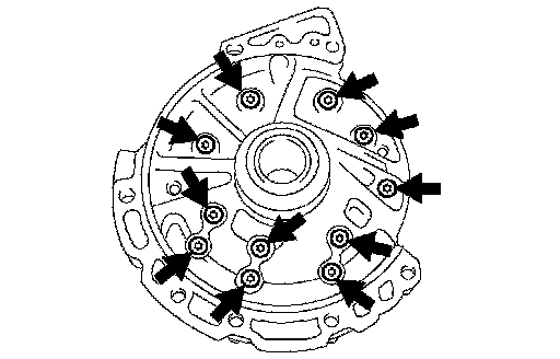 a. Using a "torx" socket (T30), remove the 11 bolts and stator shaft.