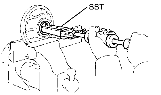 b. Using SST, remove the oil seal from the oil pump body.
