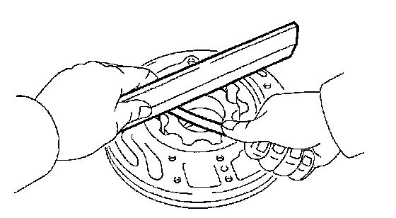 d. Using a straightedge and feeler gauge, measure the side clearance of both gears.