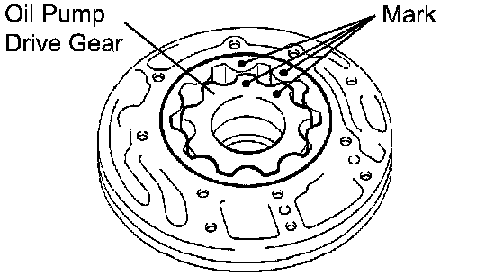 a. Coat the front oil pump drive gear with ATF, and install it to the oil pump body with the marked side facing upward.