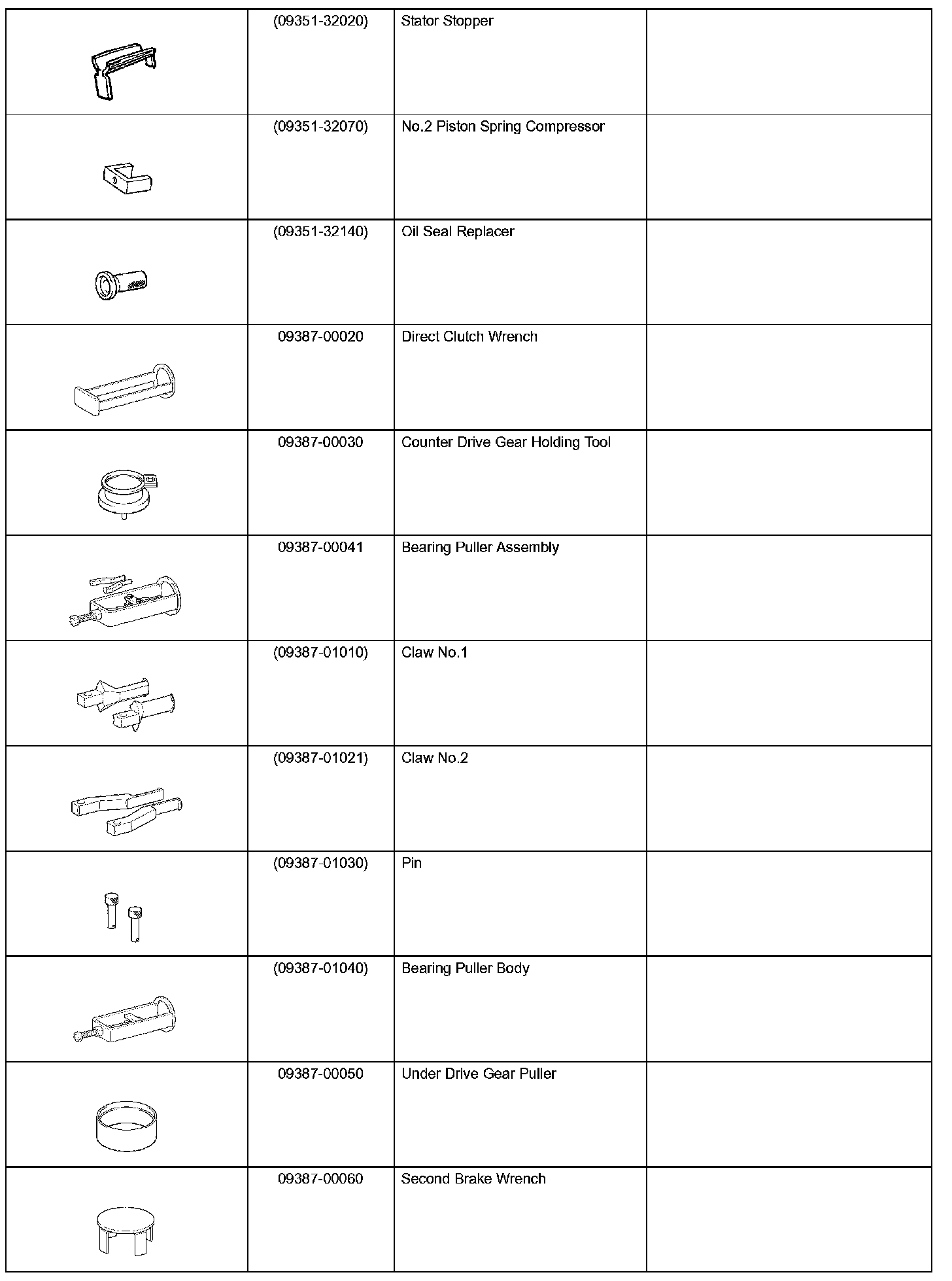 Automatic Transaxle-Recommended Tools (Part 2):