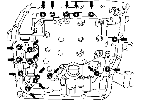 a. Support the valve body assembly and remove the 17 bolts and the transmission valve body assembly