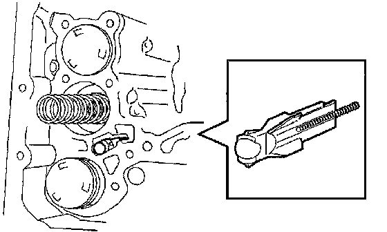 ^ Push the valve body against the accumulator piston springs and check ball body to install the valve body.