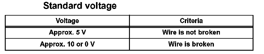 HINT: If there is approximately 10 V, the wire may be faulty between the center of the wire and the wire and on the battery side. If there is no voltage, the wire may be faulty between the center of the wire and the wire end on the ground side.