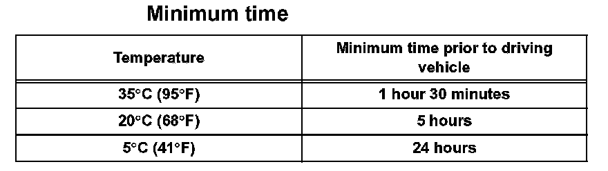 NOTE: Take care not to drive the vehicle for the time described in the table.