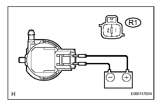 2. Connect the positive battery (+) lead to terminal 1 of the washer motor and pump assembly, and the negative battery (-) lead to terminal 2. Check that washer fluid flows from the washer jar.