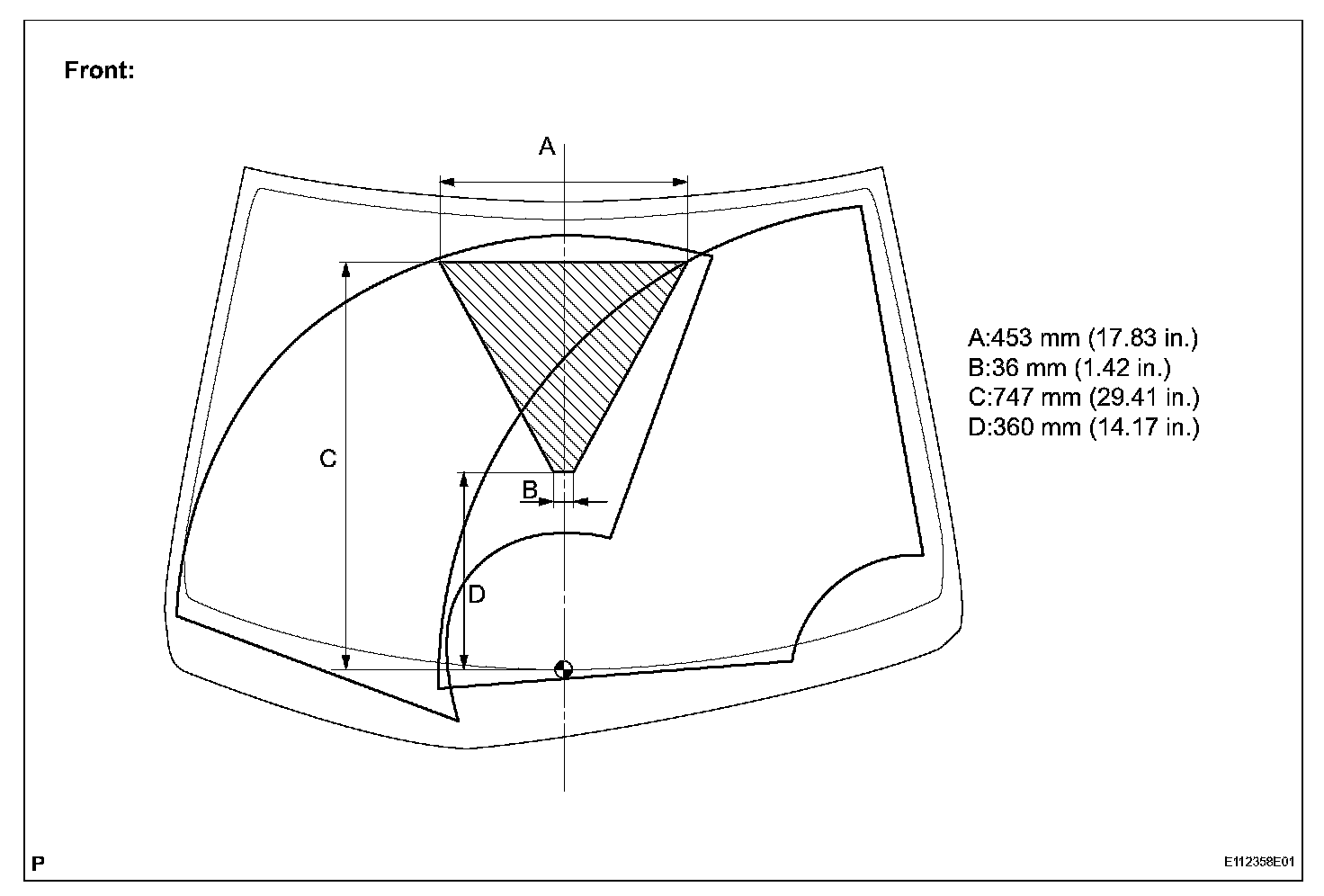 Standard: Washer fluid hits the windshield in the areas shown in the illustration.