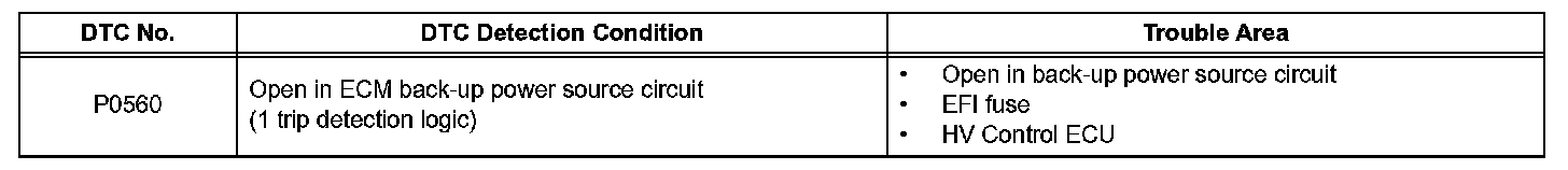 HINT: If DTC P0560 is set, the ECM does not store other DTCs.